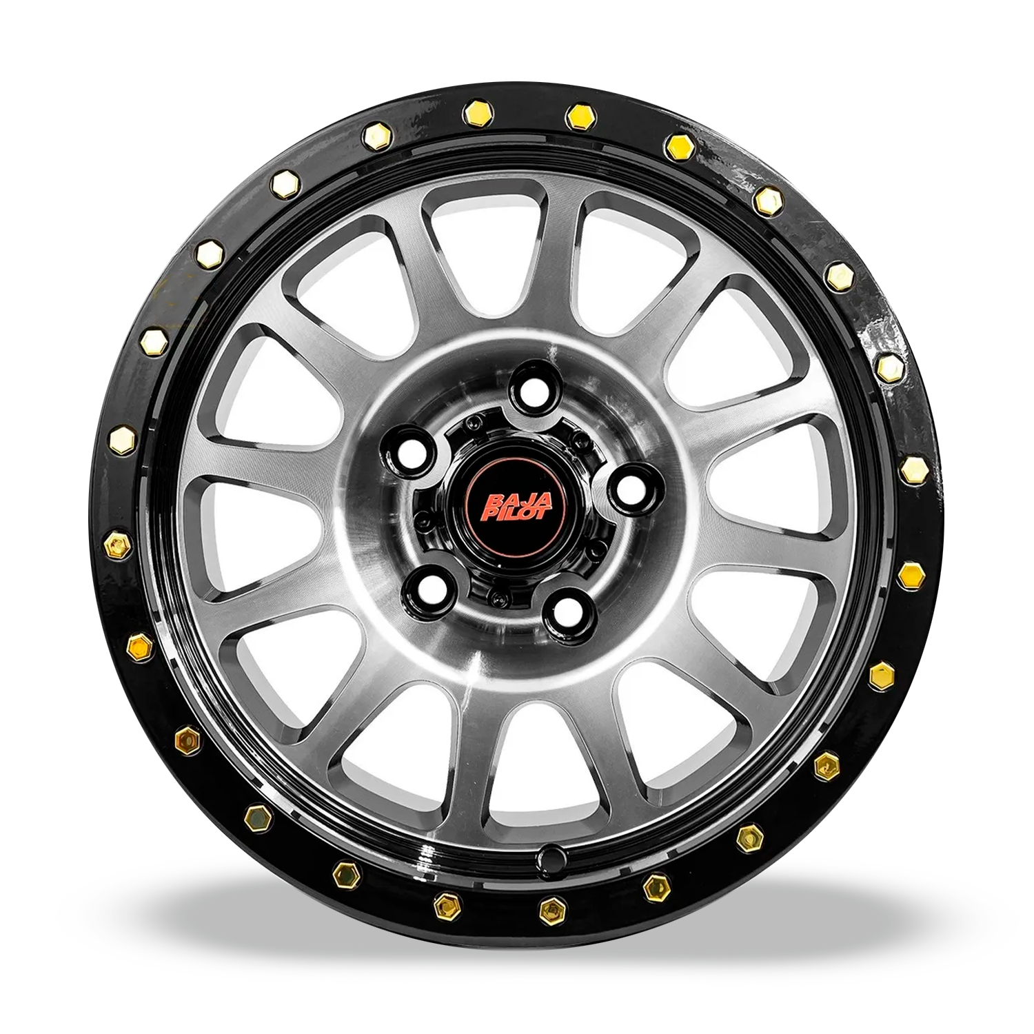 4 UNIDADES 1016 15X8 5X139.7 SILVER MACHINED FACE+LIP+GOLDEN RIVETS