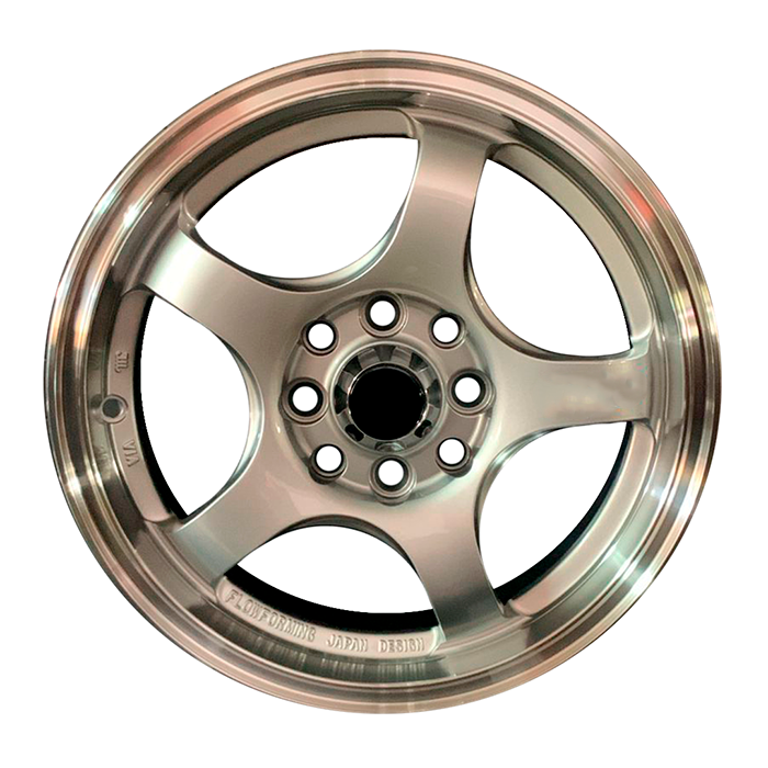RIN MODELO 1016 15X8 5X127 SILVER MACHINED FACE+LIP+GOLDEN RIVETS